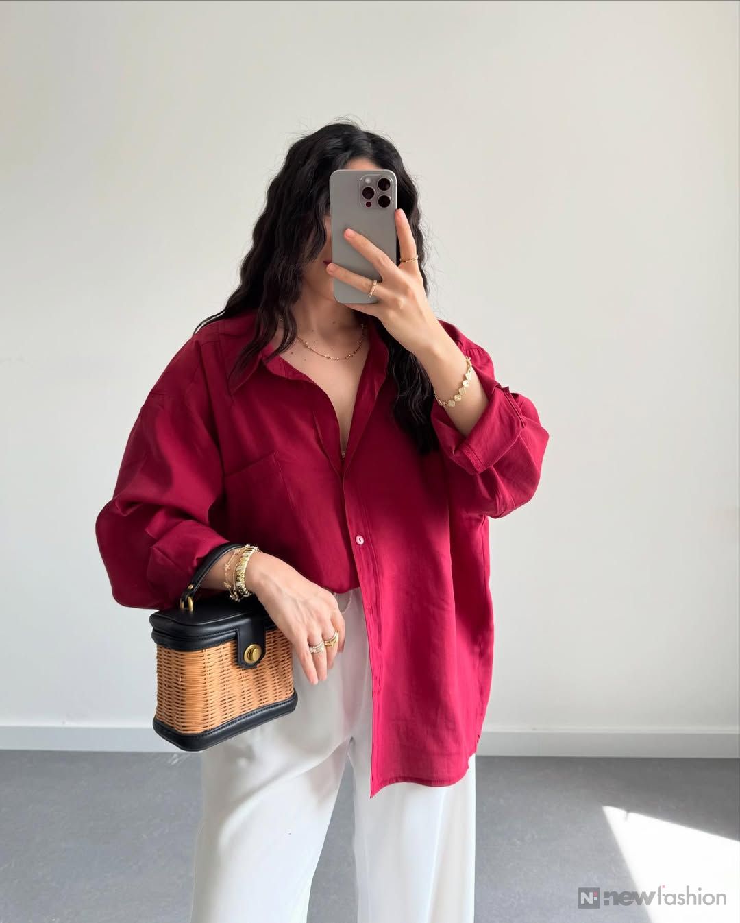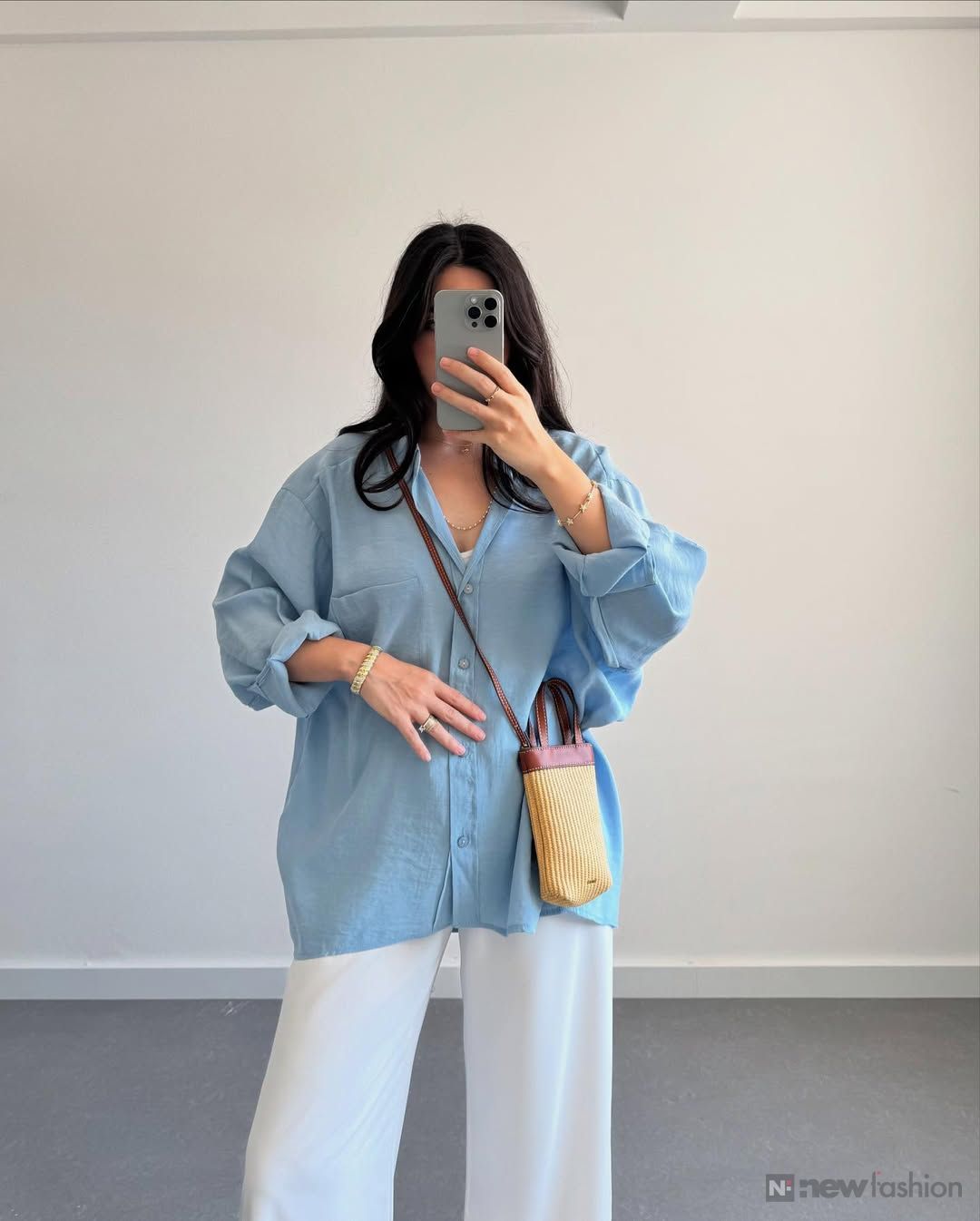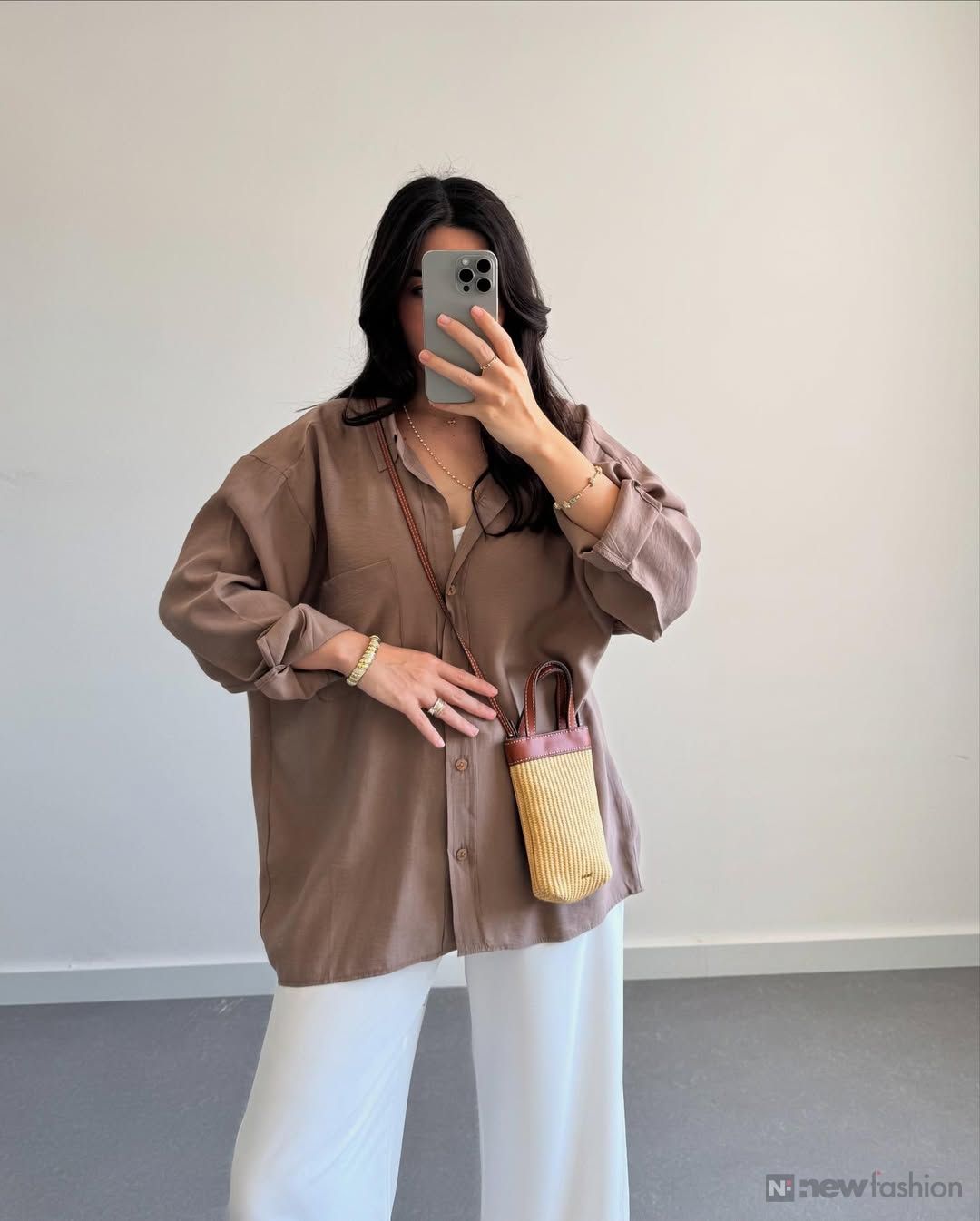 الراحة هي فاش كتلبسي قطع كتشبه ليك ولشخصيتك 🕊️. صممنا ليك هاد القميص بلمسة "Oversized" 👚 باش تحسي بالخفة والحرية طول النهار 💨، مع سروال بقصة واسعة "Wide-leg" 👖 كتزيدك همة وشان وكتمشي مع كاع التحركات ديالك بكل أناقة ورقي 🌟.